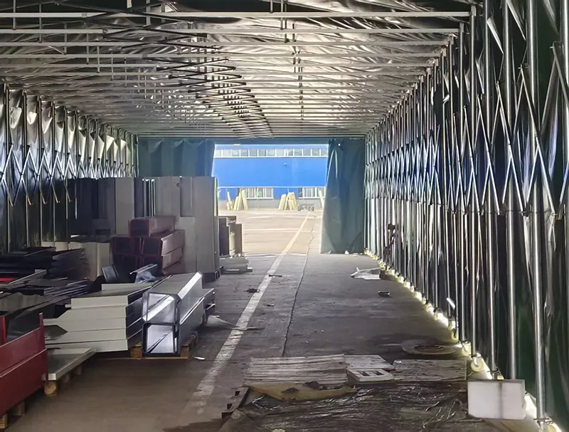 伸缩灵活方便:通过人工推拉或电动驱动(可选)即可实现棚体伸缩,收合后不占用额外场地,展开时快速形成封闭仓储 / 作业空间,大幅提升工业场地利用率。