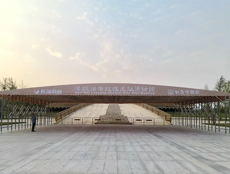 双立柱设计是核心的亮点,相比单立柱单侧受力,双立柱采用双排立柱对称支撑,框架受力更均匀,整体稳定性直接提升2倍以上。优质双立柱推拉篷抗风能力可达10-12级,能轻松抵御洛阳本地大风、雷雨等恶劣天气,不会出现单立柱篷架倾斜、晃动的问题;同时立柱间距合理,主梁承重更强,顶篷可轻松承载雨雪积压,避免棚顶塌陷,彻底解决简易篷“风一吹就晃、雨一大就塌”的痛点,户外使用更安心。
